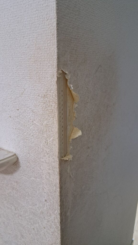 さらに壁紙が破けてしまったところもあり、下地が見えている状態です。